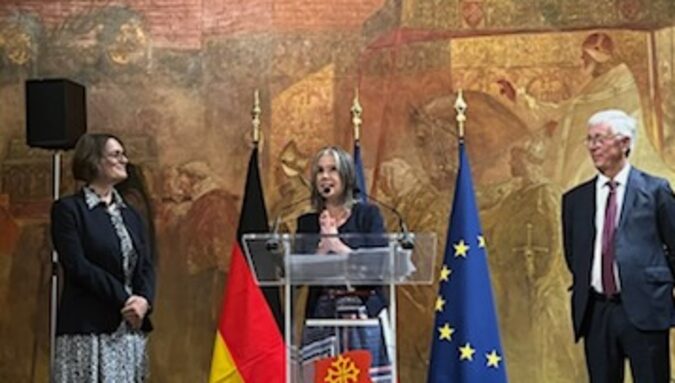 Félicitations à notre collègue Sophie Nitze qui a reçu des mains de la Consule générale d'Allemagne, ce jeudi 9 octobre, le prix de l'Amitié franco-allemande, dans le cadre prestigieux de la Salle des Illustres du Capitole de Toulouse.