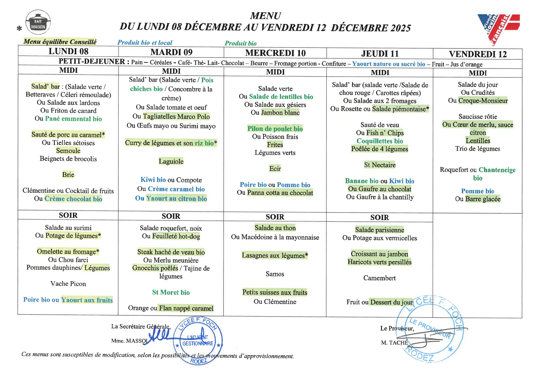 Menus de la semaine